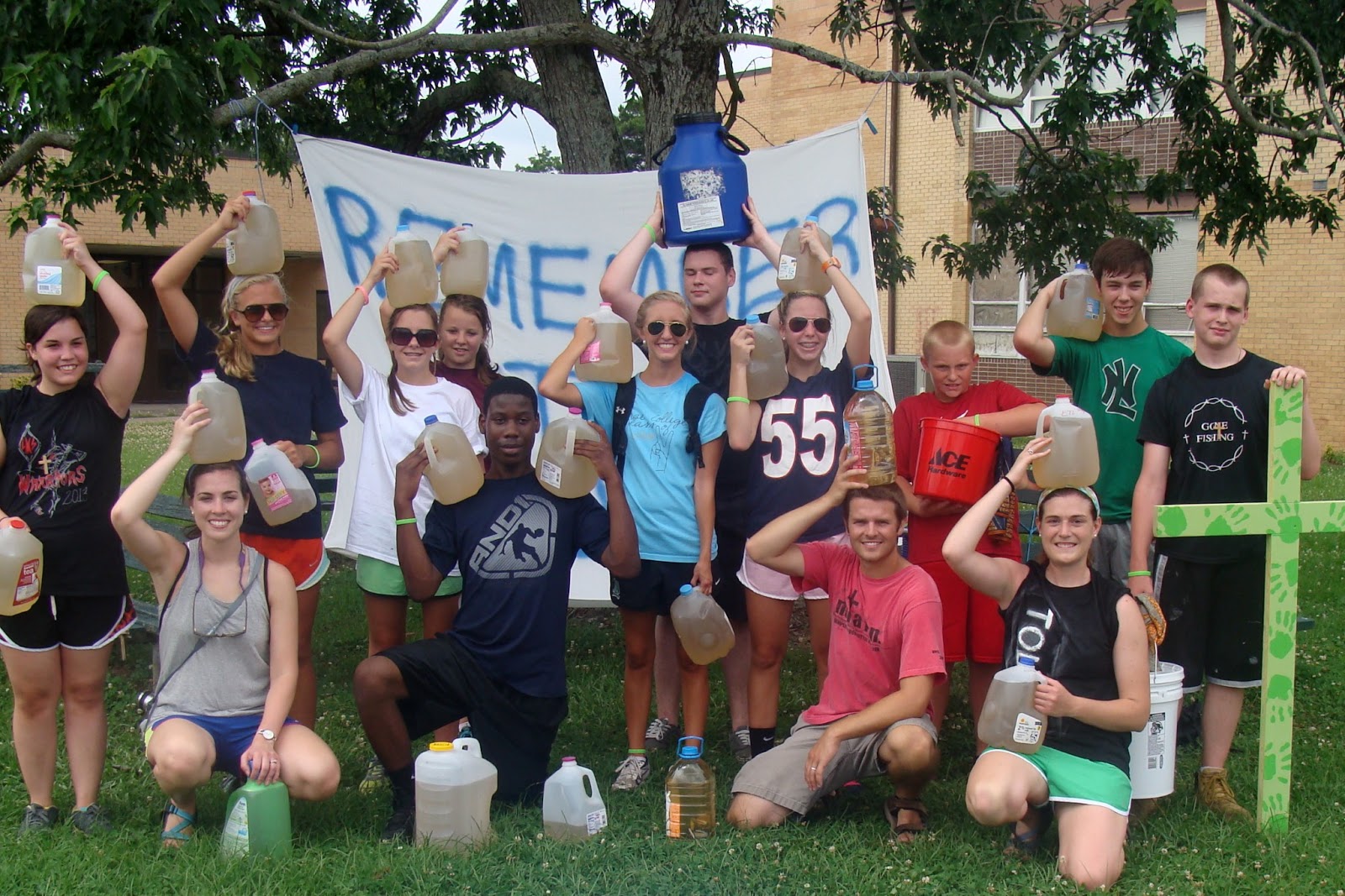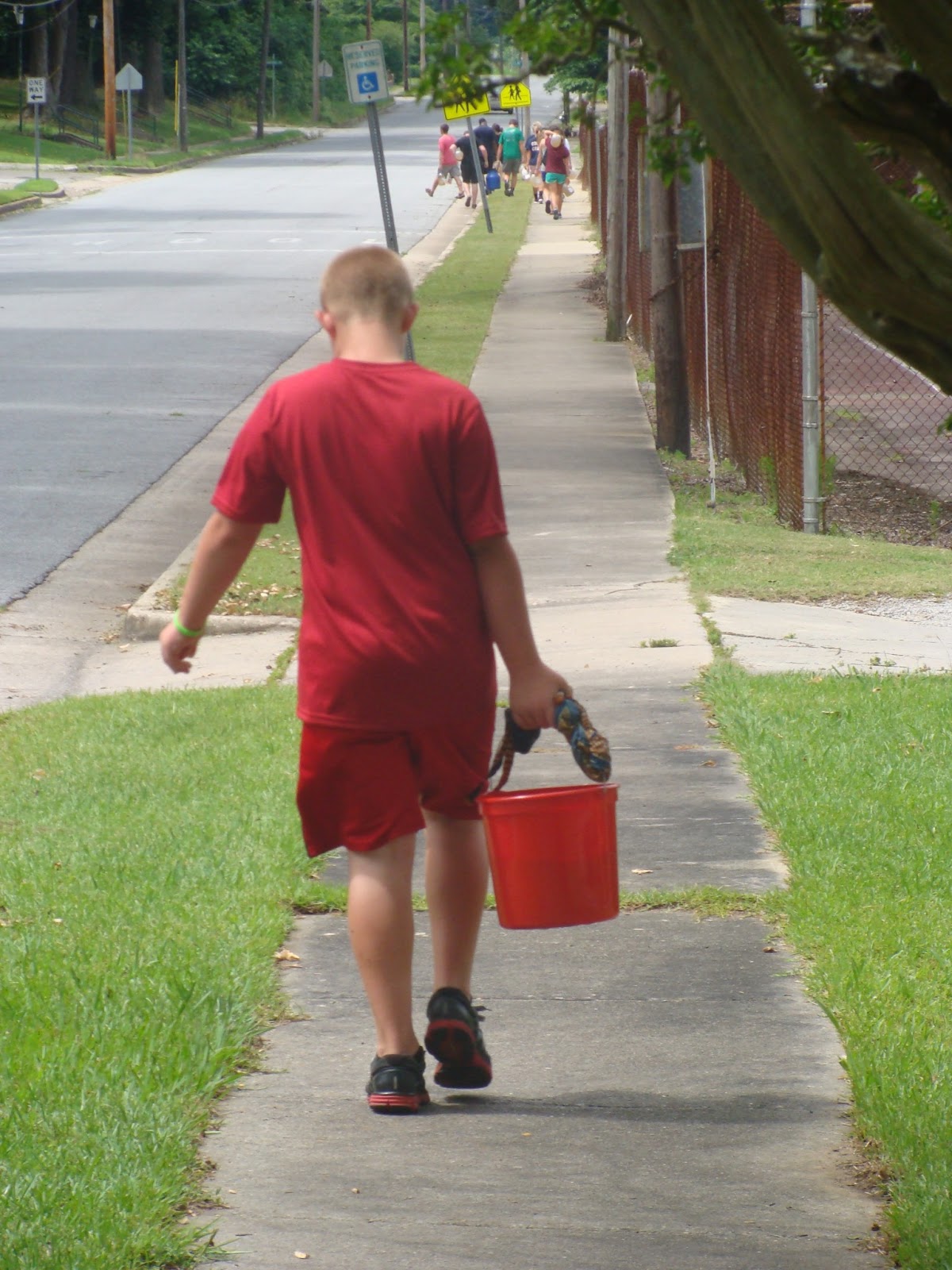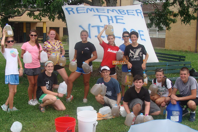 Students carry the water back to Rochelle Middle School (2.4 miles) where the camp is based.